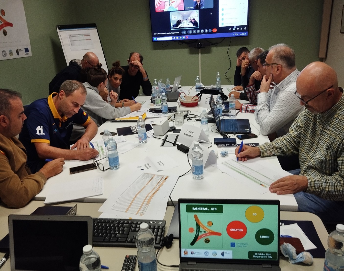 The first in-person meeting of the Basketball-KTN project was successfully held in Borgomanero, Italy, on October 22, 2024, bringing together partners from Greece, Serbia, Spain, and Italy, while the Ukrainian partner participated online due to the ongoing war situation in the country. The meeting marked an important milestone for the project’s journey, building on the Kick-off Meeting in Athens and laying the foundations for the next phase of implementation.