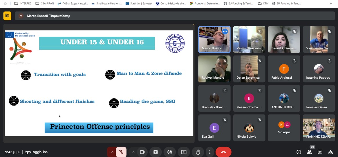 Continuing the knowledge transfer among the partners of the Basketball-KTN project, on March 10, 2025, an online webinar was held, led by College Basketball, presenting valuable practices and approaches for structuring training sessions for players aged U13 to U19.